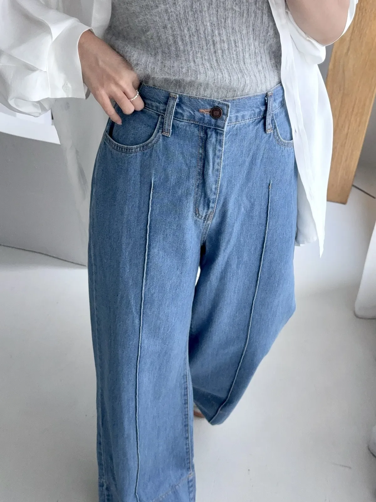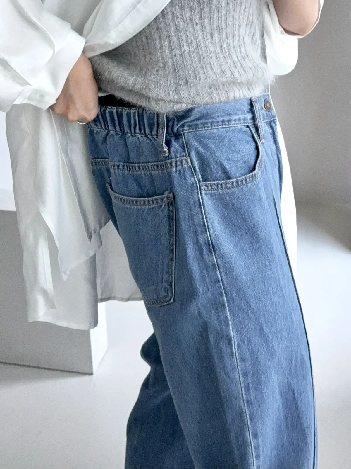 但不貼腿的寬褲版型