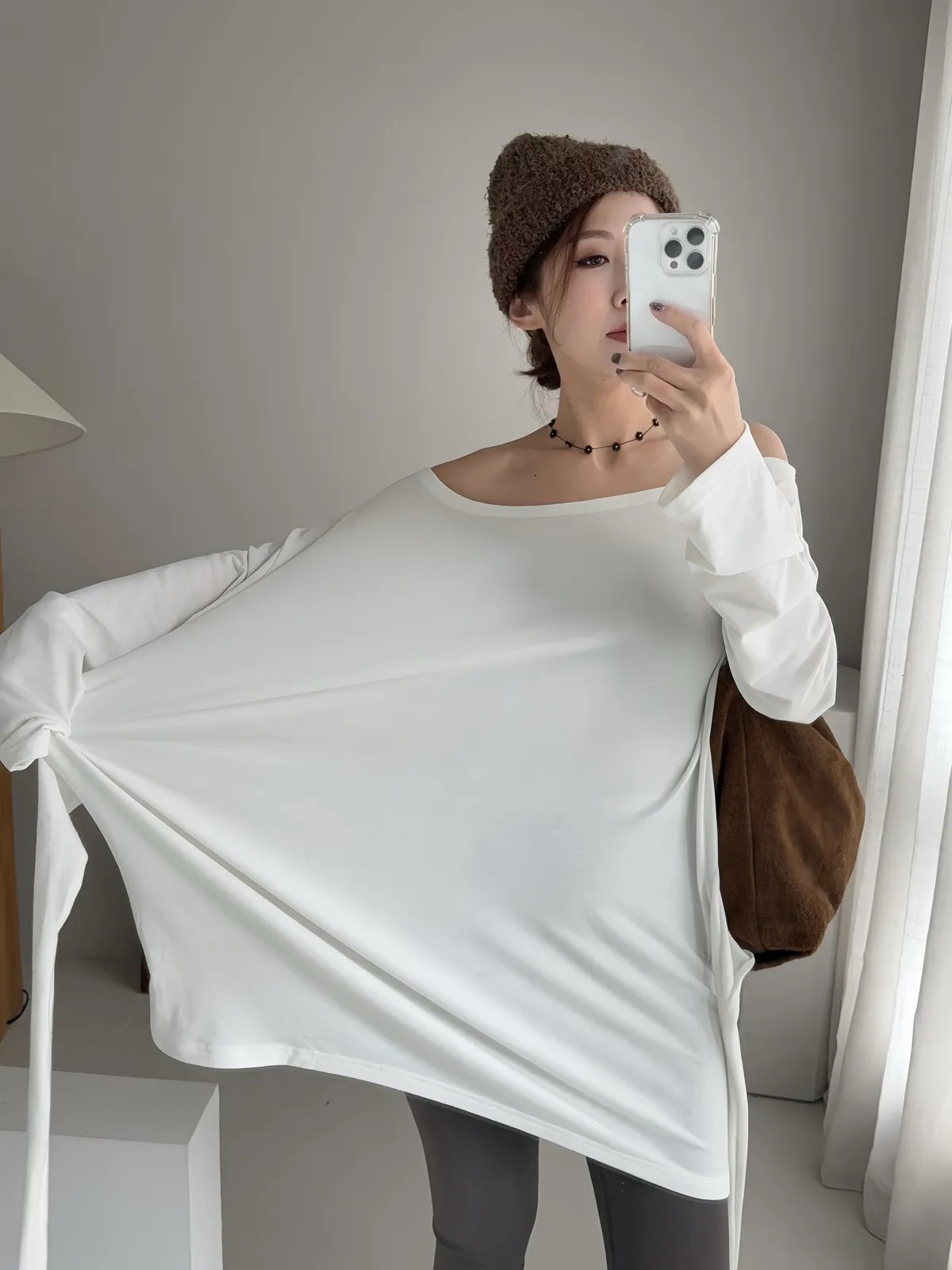 領口寬鬆可拉成斜肩