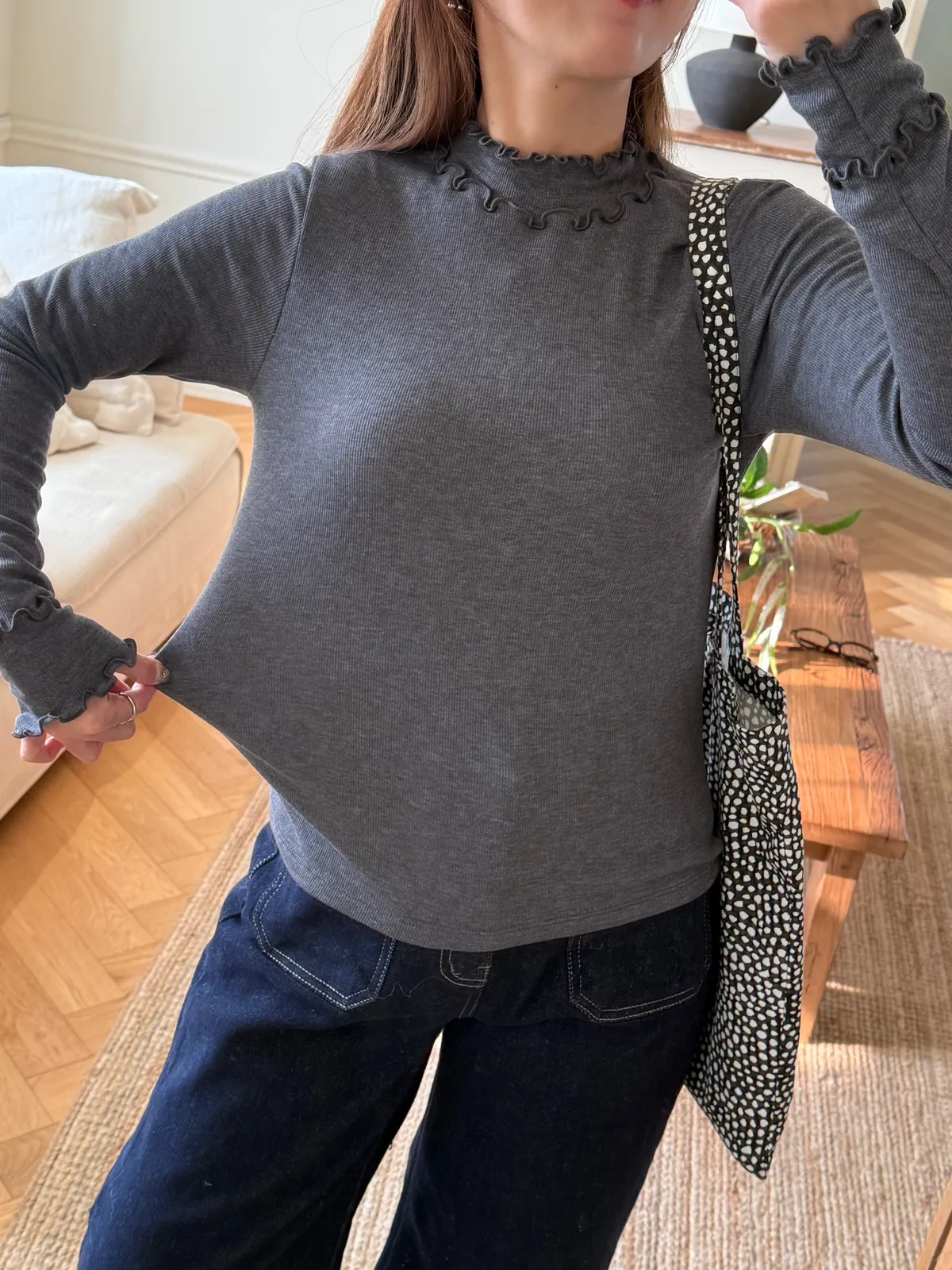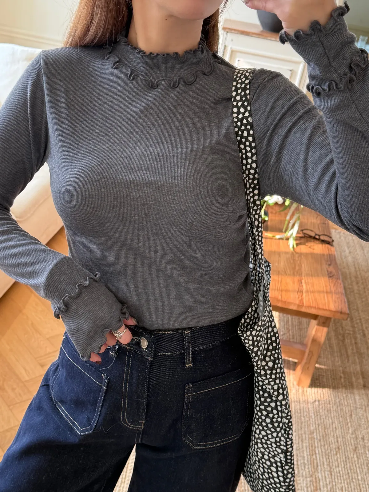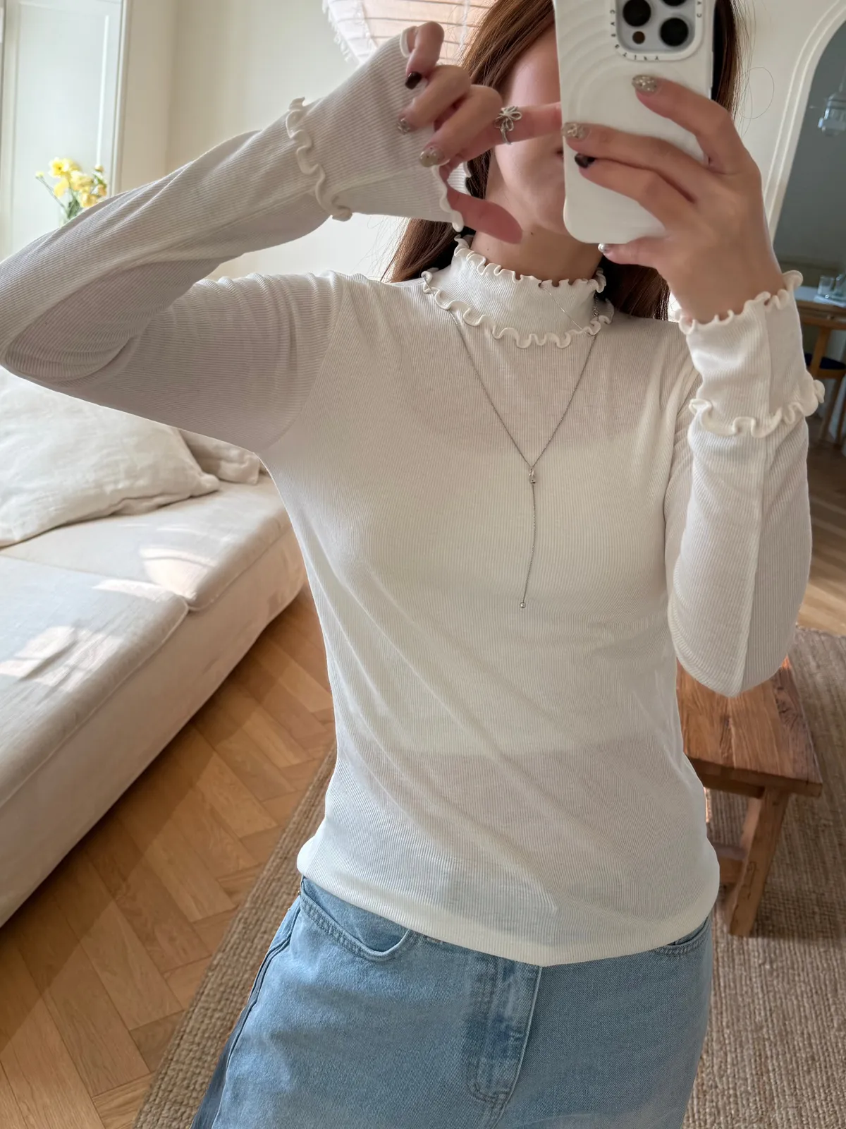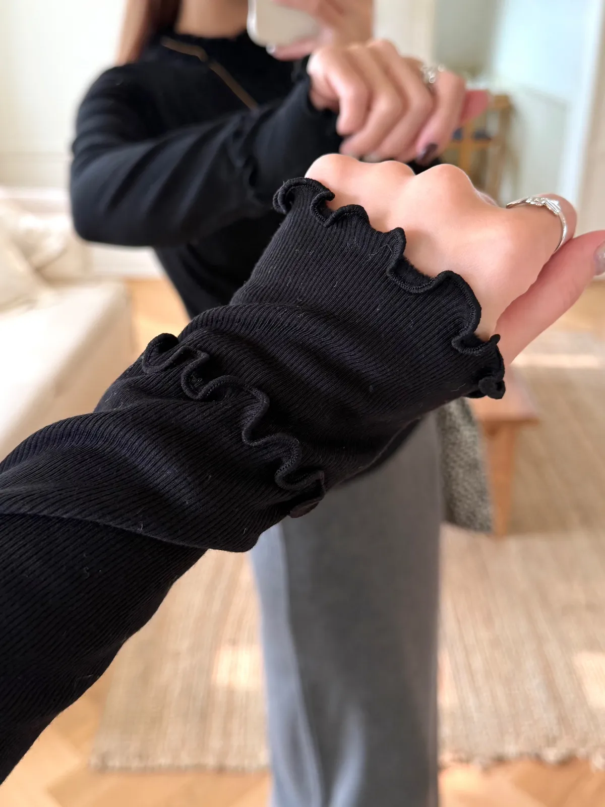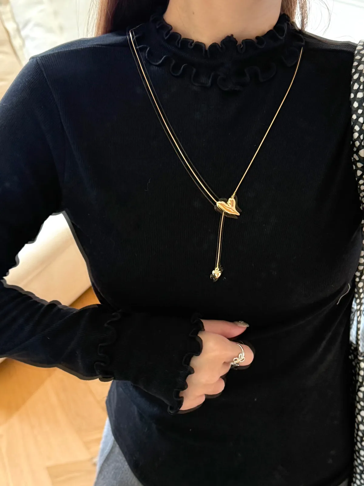 同時符合「包色價」及「VIP/VVIP折扣」系統會擇優帶入其一計算poly58% 人造絲35%天~~~這件不能不收!應該是我今年冬天最滿意的有領打底了一看到雙眼發光!單穿跟疊穿的畫面滿滿湧出可以做很多漂亮的層次穿搭雙層的木耳邊要可愛S誰微微露出領子跟手袖都Q的要命布料超~~舒服很親膚!彈性極好無比不限身形有5色!都超好看必須包色!包色包起來!成熟又帶點優雅的小QQ