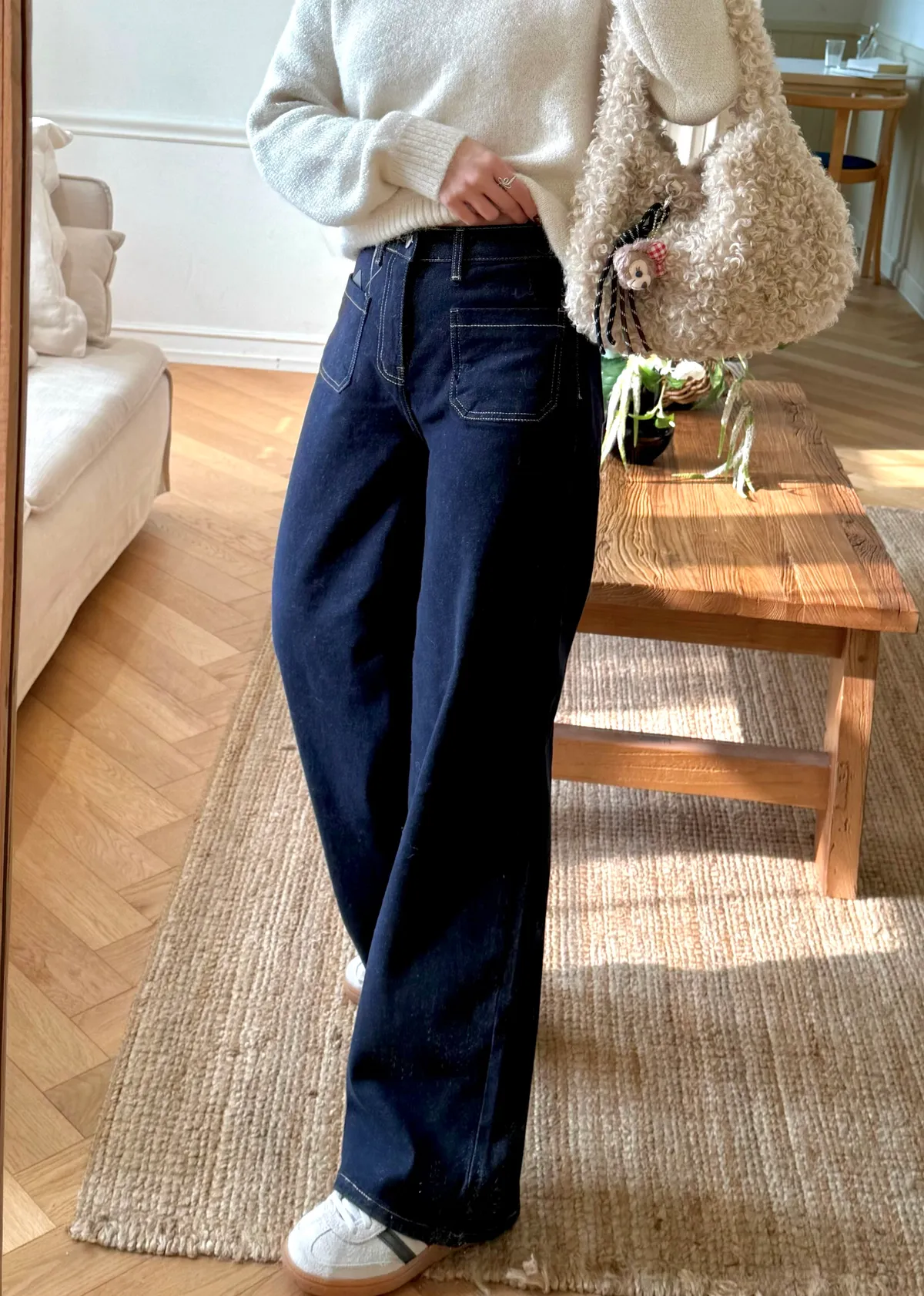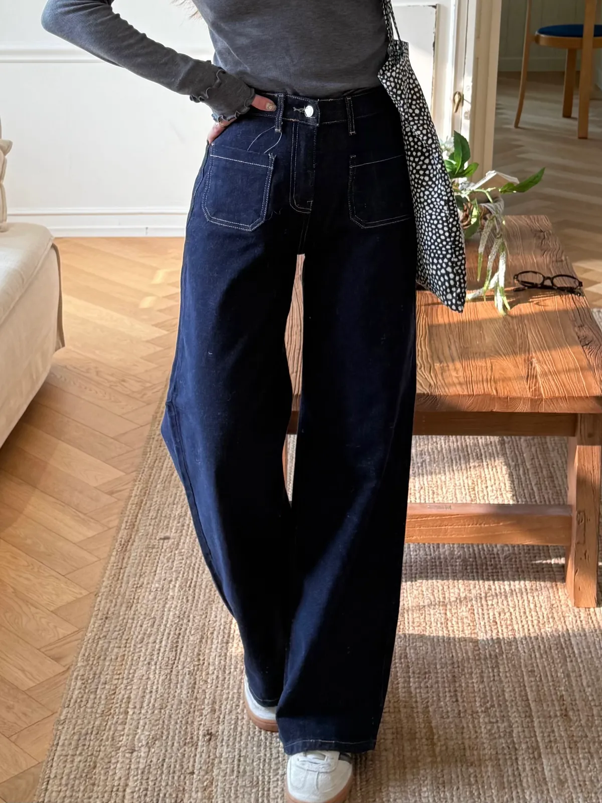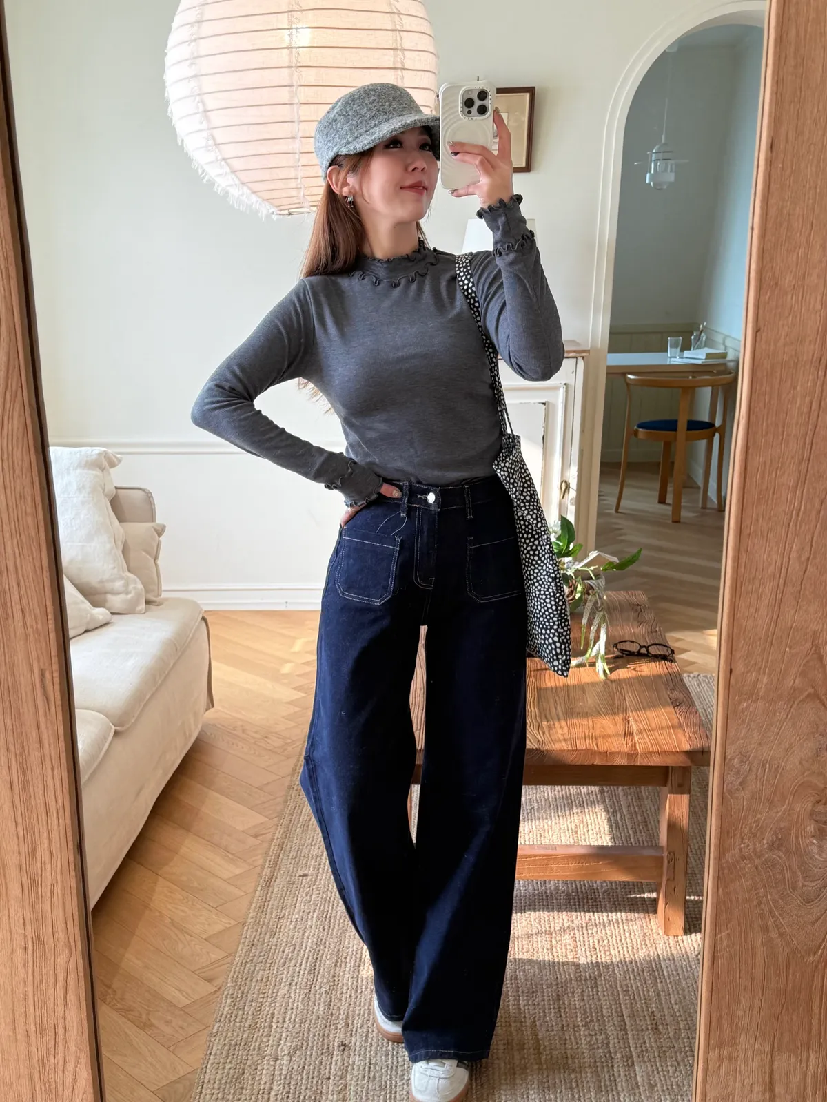 直立式口袋修飾臀寬的線條