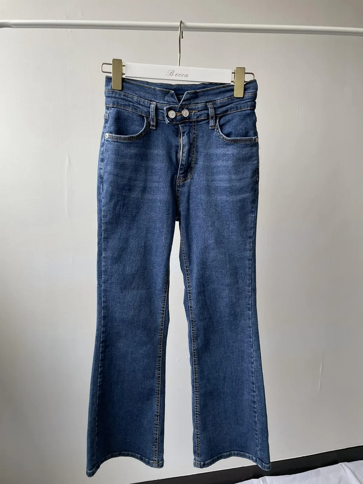 高腰雙釦 褲頭做V字設計