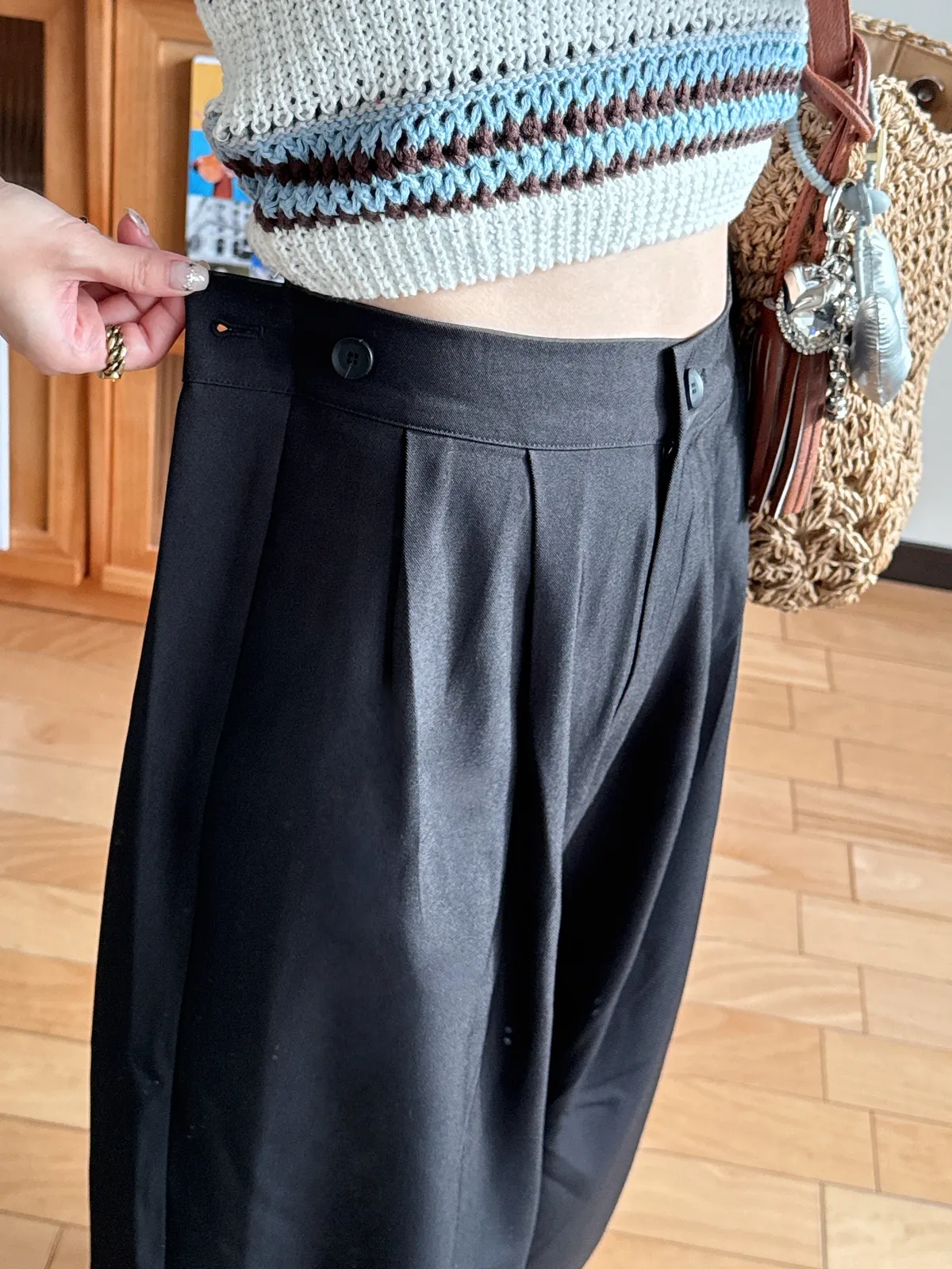 側腰鈕扣延伸打摺設計