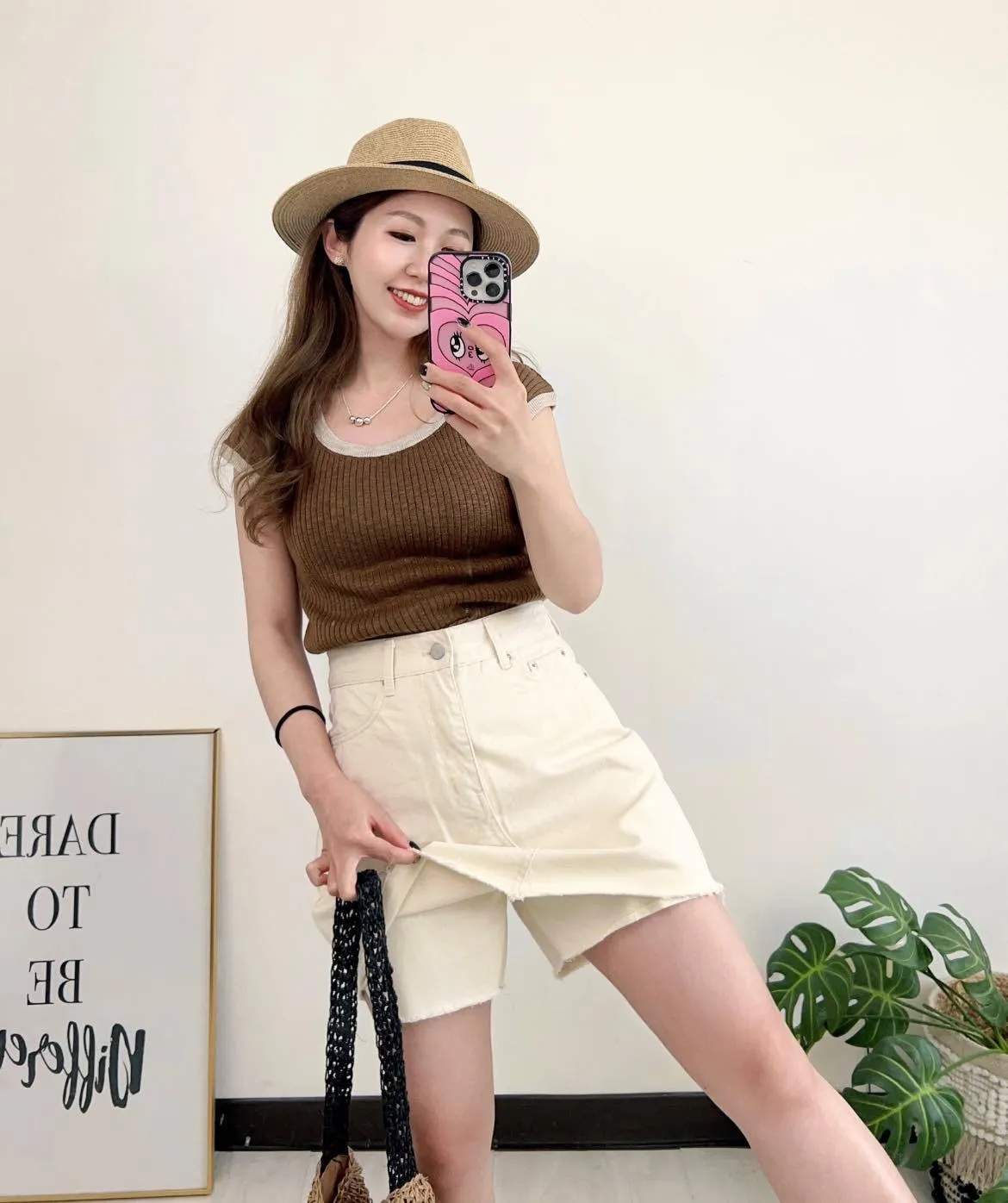 A : 身高150cm/體重48kg/肩寬39cm/腰圍64cm/臀圍91cm/此款穿S