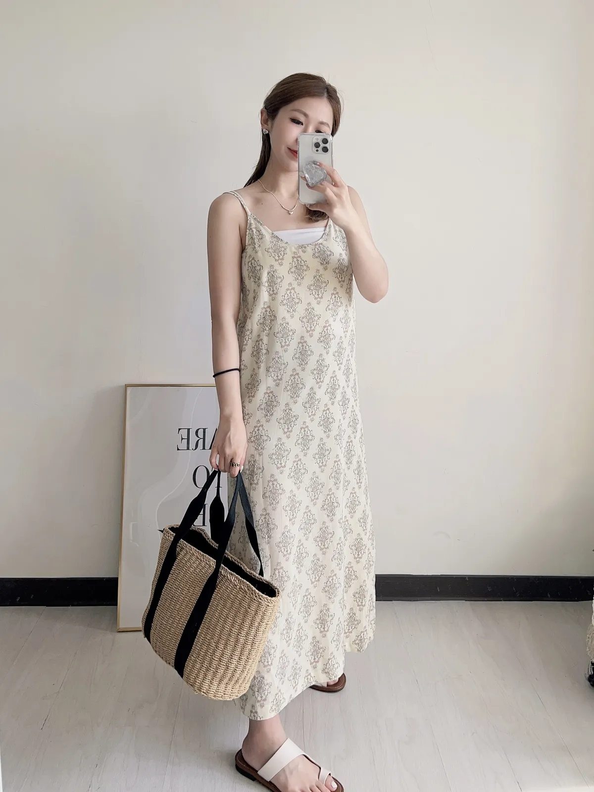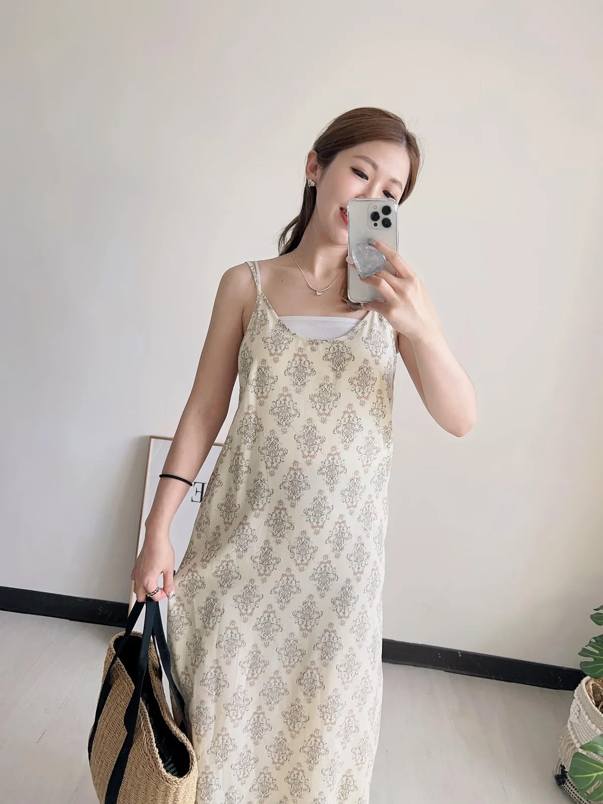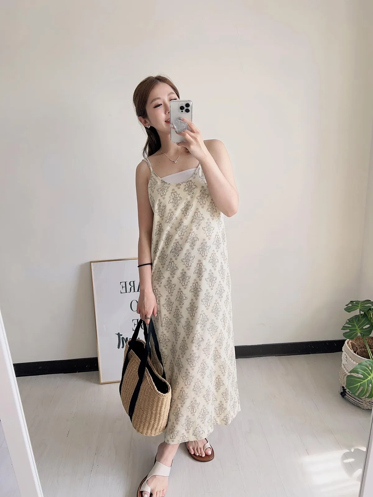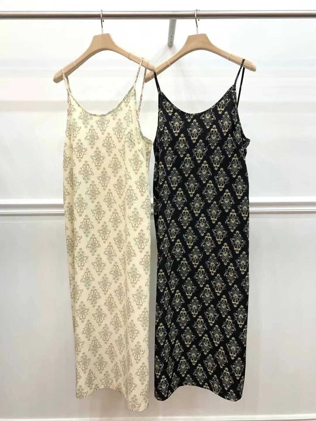 圖騰太美 帶復古歐式設計感 很有質感的配色~超好看! 像緞面睡衣等級的親膚雪紡材質 很涼!很輕! 版型超級順身不會貼! 後側有有開岔可以大步走 沒有內襯 但不太會透膚 米白的也不太透 穿淺色的內衣褲就沒問題 肩帶不可調整 建議要搭平口或是背心 【平放量尺寸表】 胸寬41cm/臀寬46cm/全長117(含肩)cm前肩帶9cm後肩帶23cm⭐下單前請詳閱購買須知:https://reurl.cc/lgArE9購買前請仔細閱讀,下單即代表100%同意賣場規則