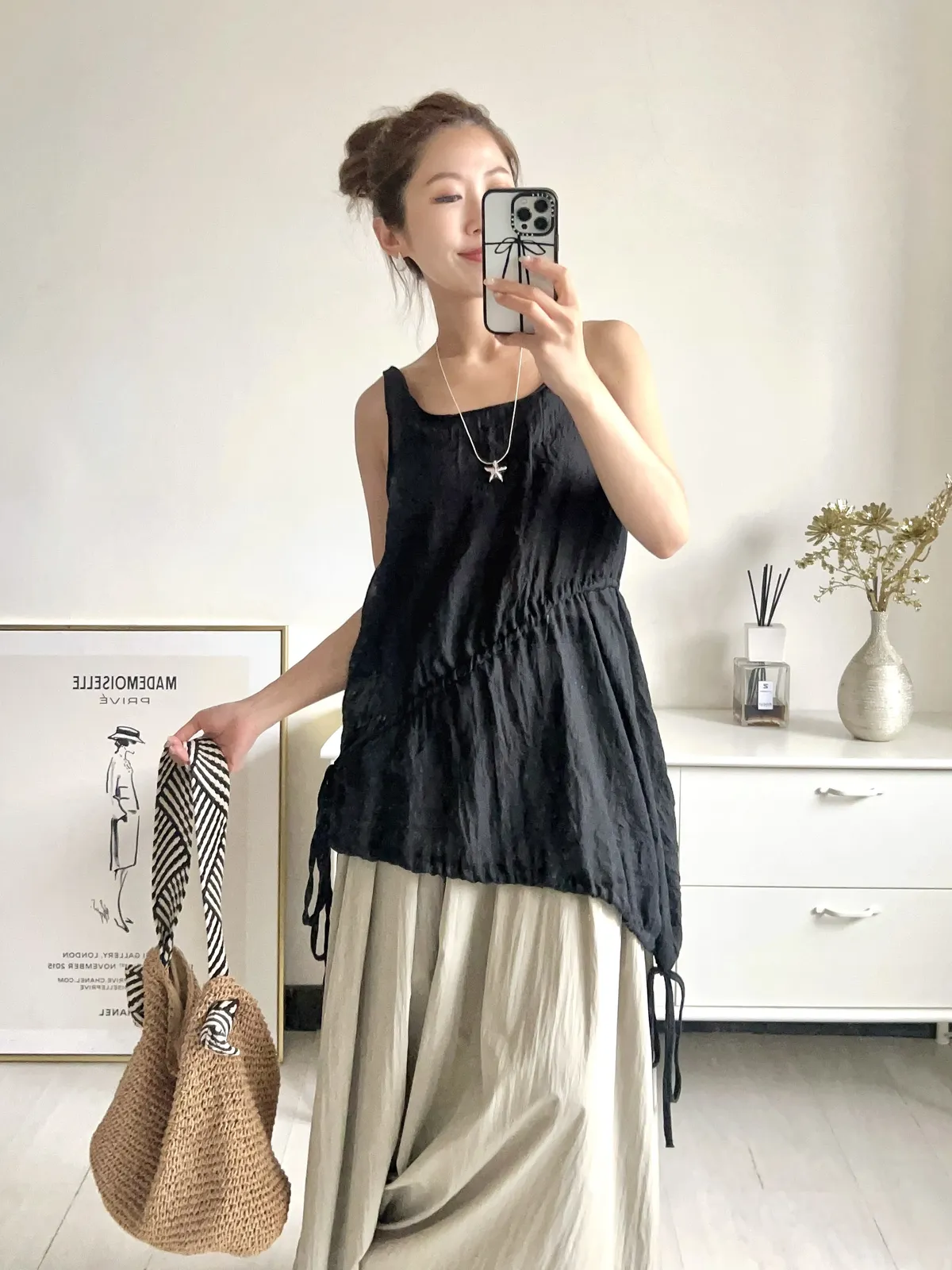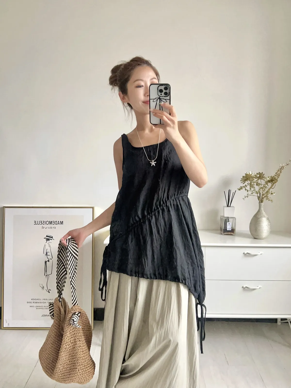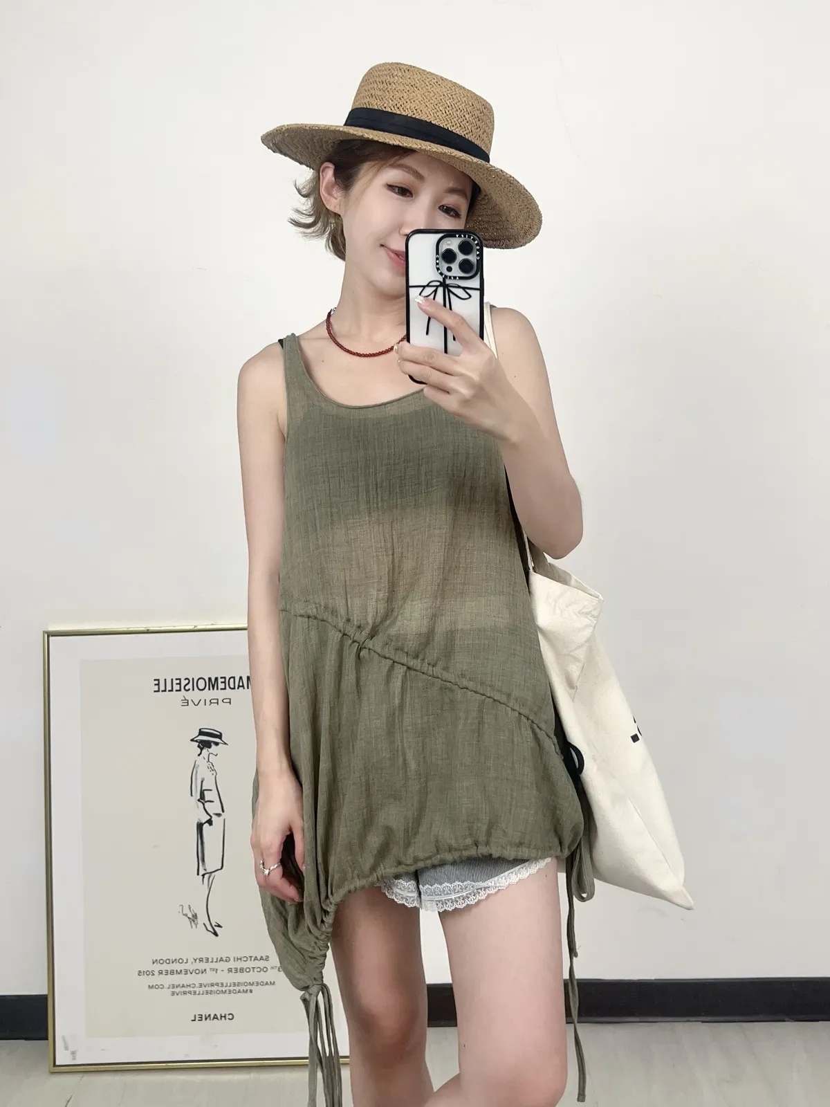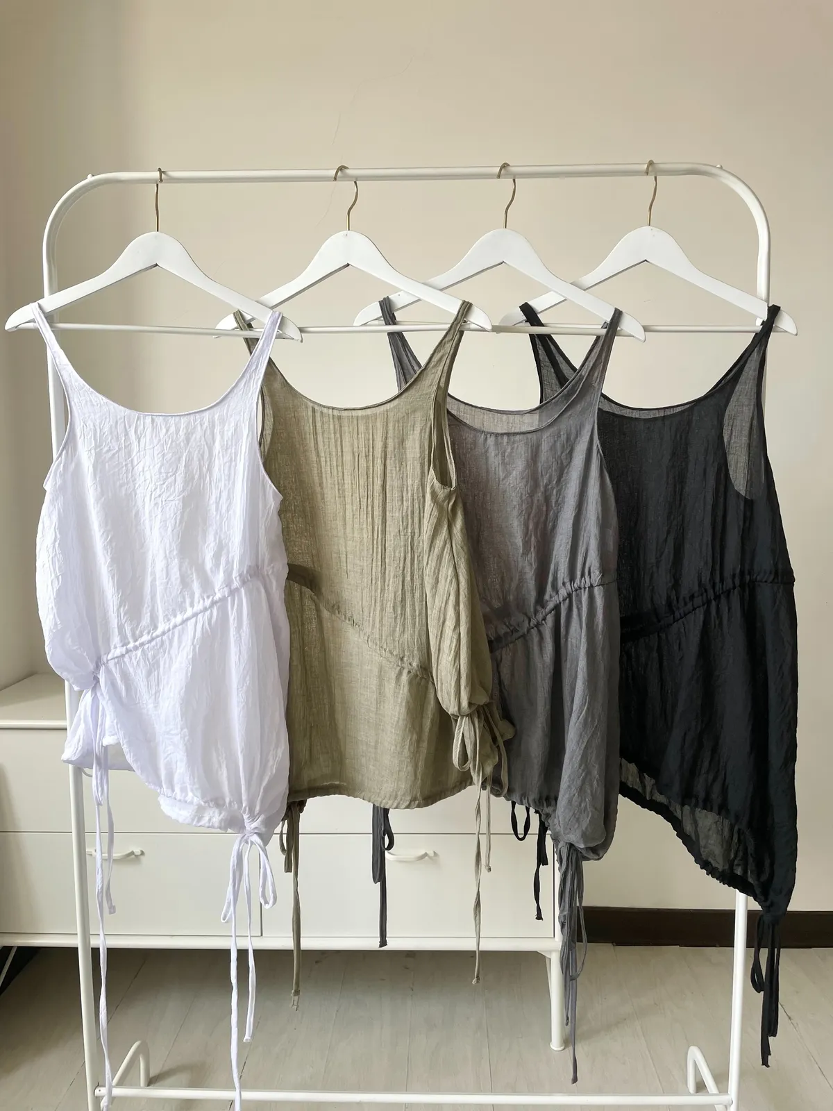 【8A16-AD 韓國製斜擺抓皺綁帶背心】共四色