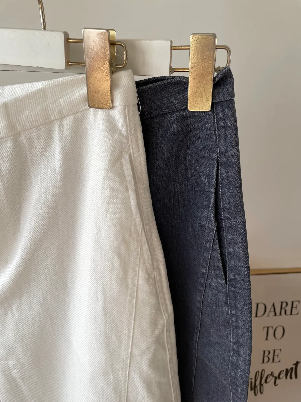 灰藍色的布料較為硬挺