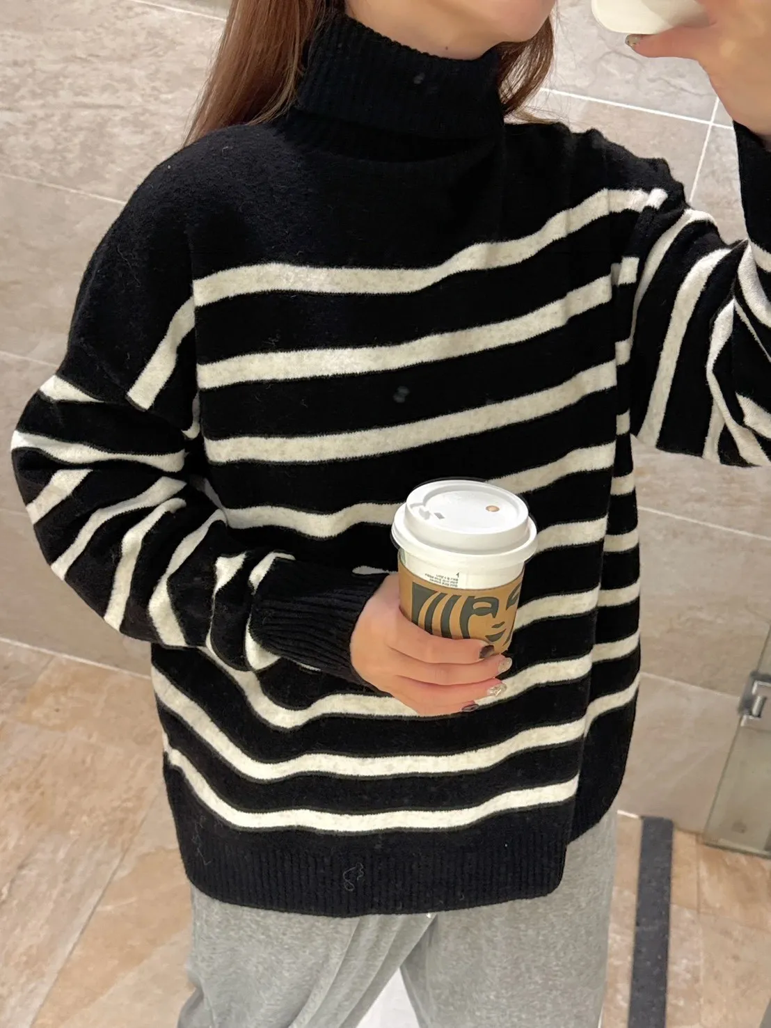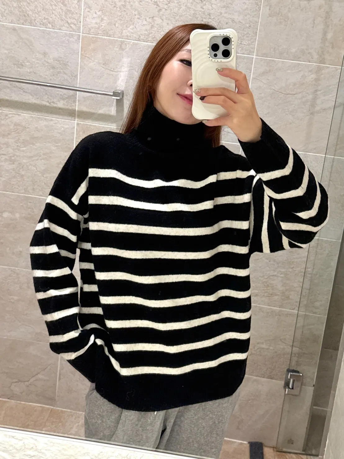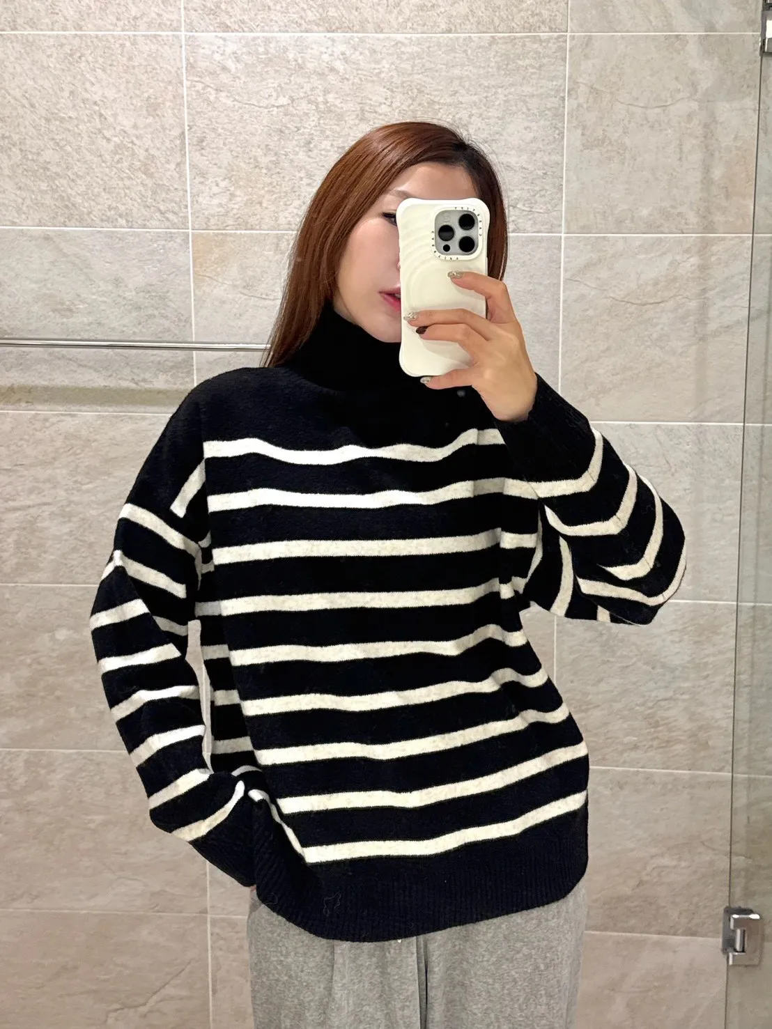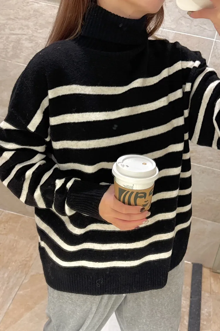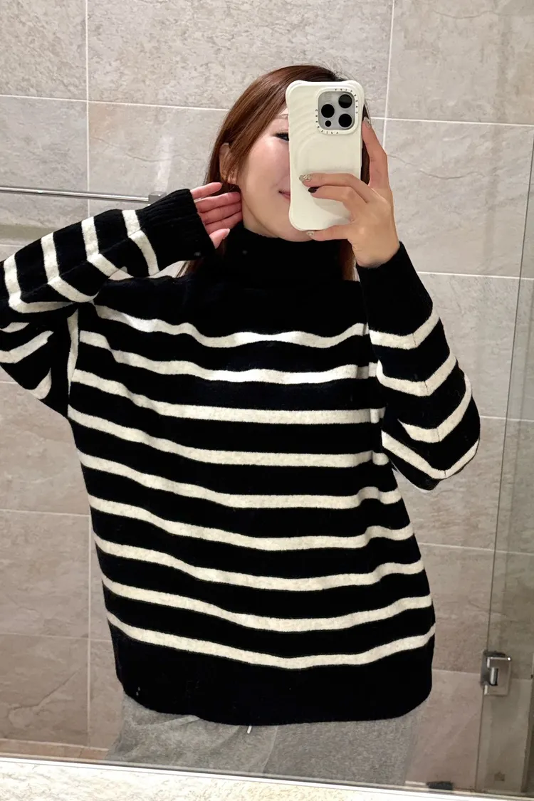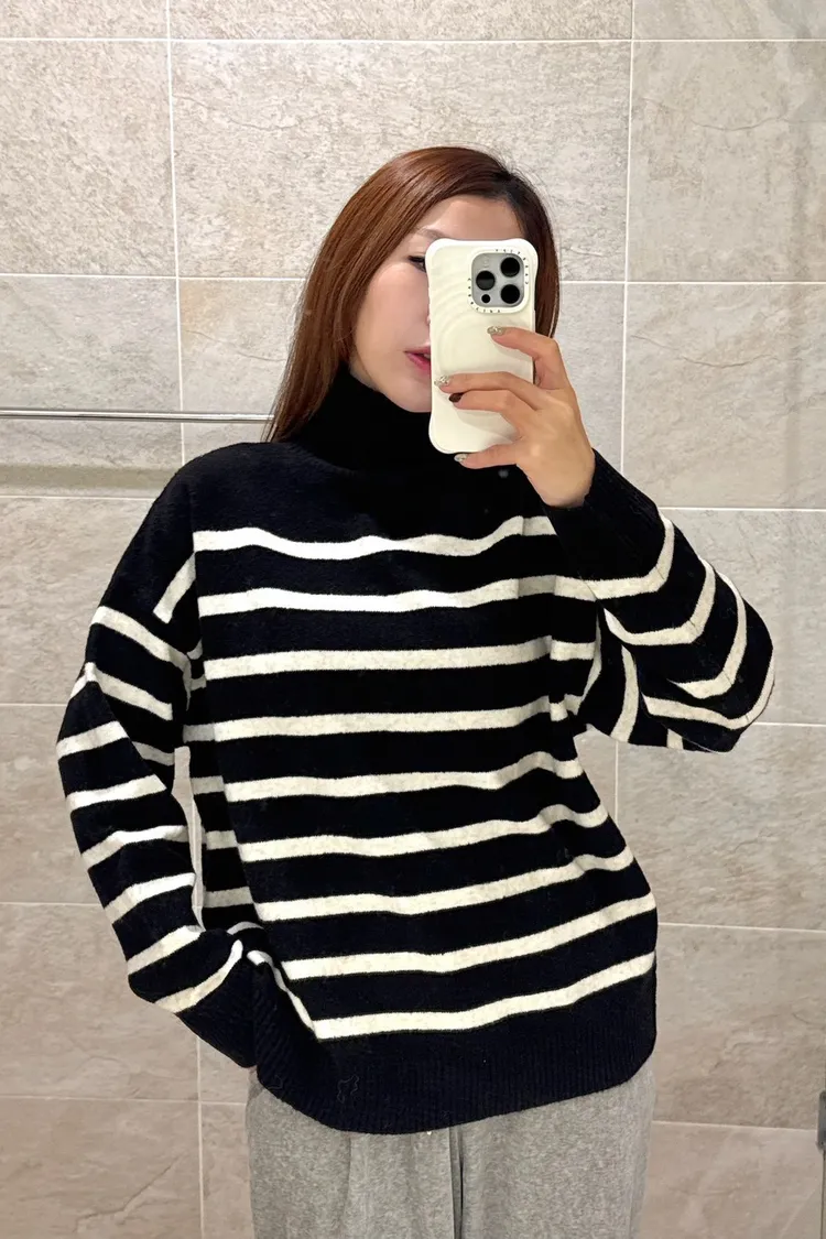 【TA11 20%羊絨橫條微高領羊毛毛衣】共一色-BX